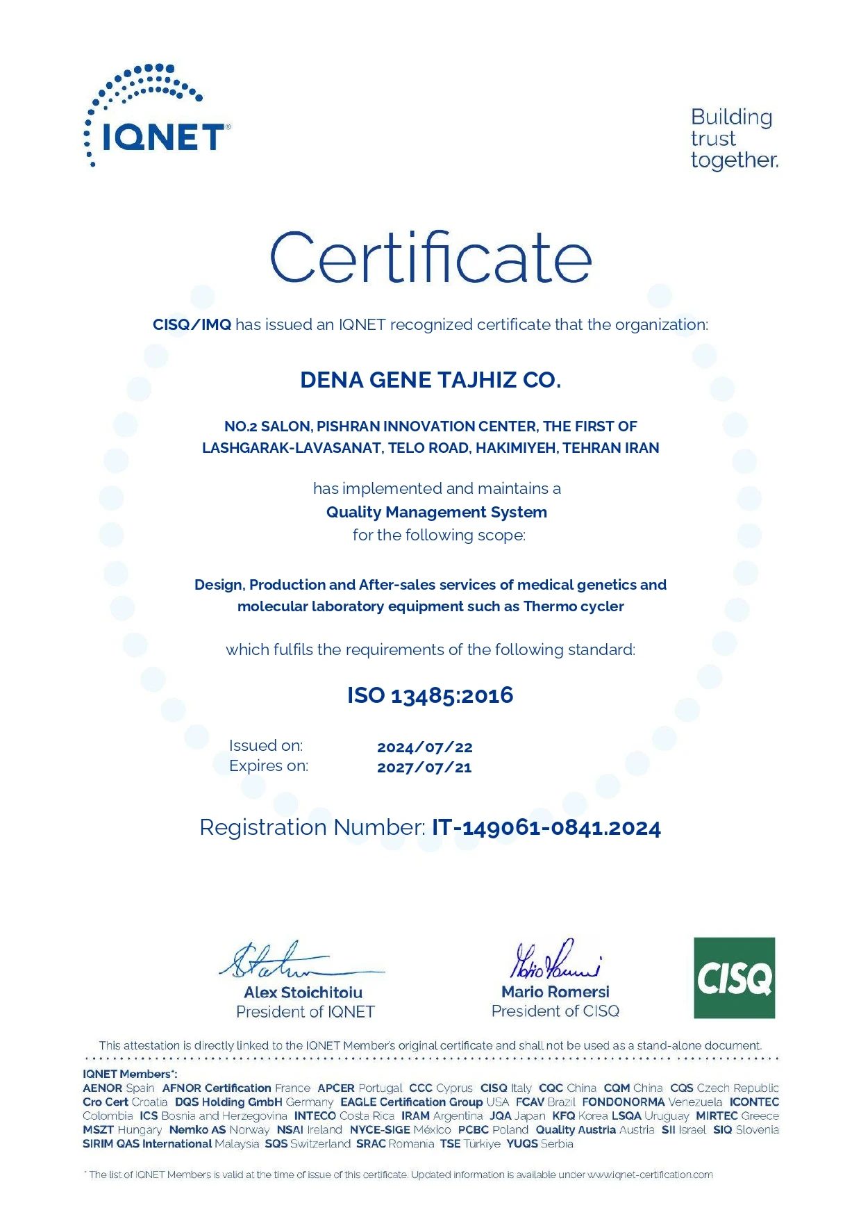 شرکت دناژن تجهیز به عنوان یکی از پیشگامان طراحی و تولید تجهیزات آزمایشگاهی، همواره در مسیر نوآوری و ارتقای کیفیت گام برداشته است. دریافت گواهینامههای معتبر ملی و بینالمللی، بیانگر پایبندی ما به استانداردهای جهانی، دقت در فرآیند تولید و تعهد به رضایت مشتریان است. این افتخارات نشان میدهد که محصولات ما نهتنها از نظر فنی و کیفی در بالاترین سطح قرار دارند، بلکه قابلیت رقابت در بازارهای جهانی را نیز دارا هستند.