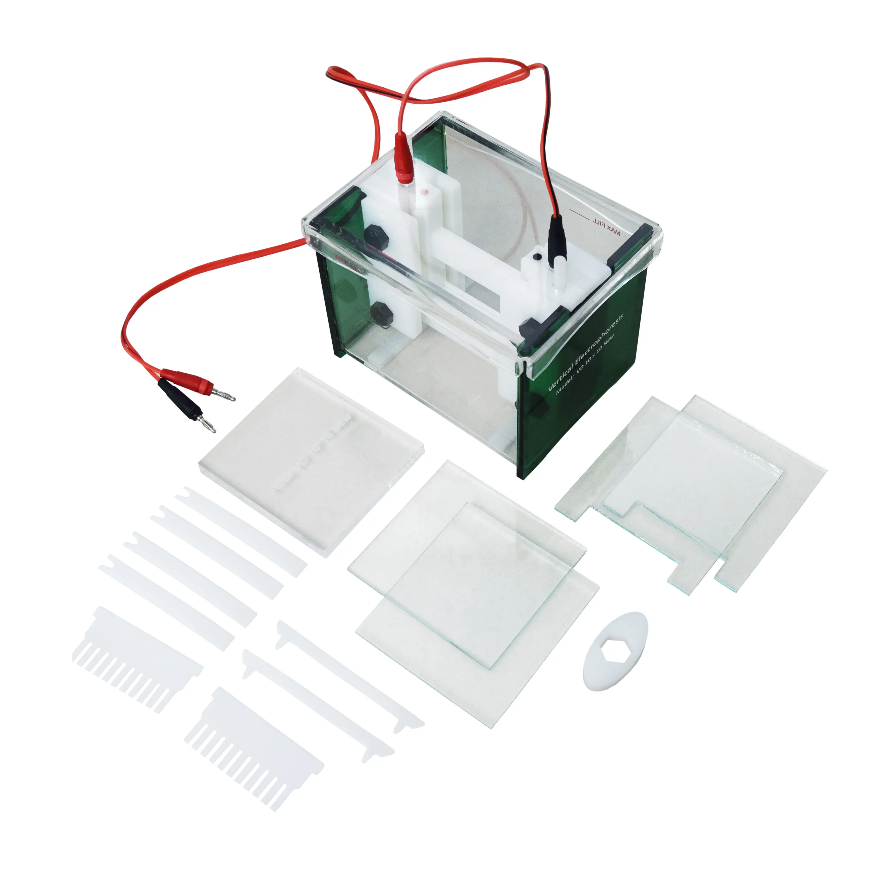 5- شیشههای تهیه ژل (یک جفت کامل Large Format): شامل شیشه تخت و شیشه U شکل، مخصوص ژل 21×20 سانتیمتر با حجم تقریبی 44 میلیلیتر برای هر ژل.
