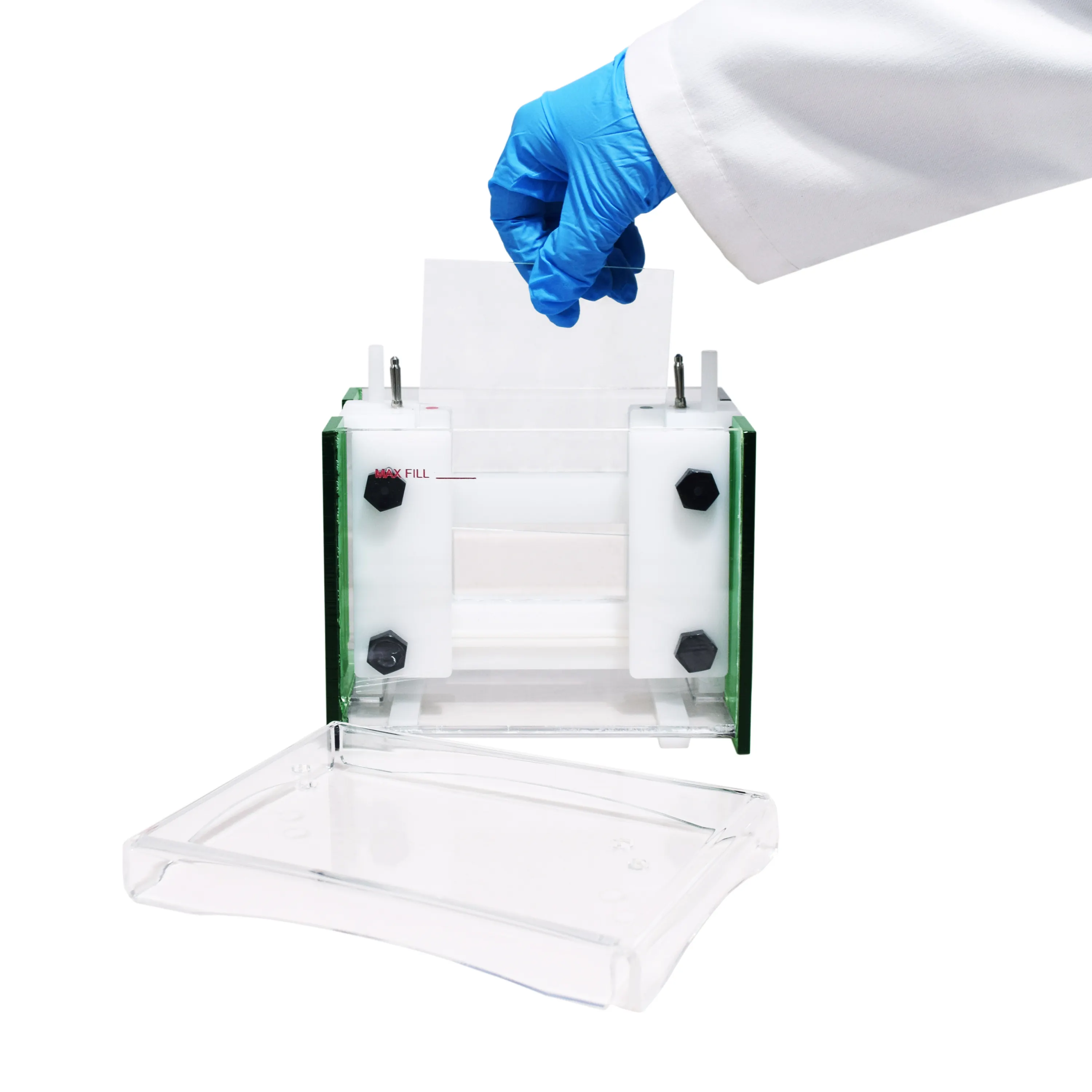 اجرای همزمان دو ژل با مصرف پایین آکریل آمید (حدود 6.5 mL برای هر ژل) باعث میشود هزینه هر ران به شکل محسوسی کاهش یابد. در آزمایشگاههایی که هفتهای چندین بار SDS-PAGE انجام میشود، این تفاوت در مصرف مواد به صرفهجویی سالانه قابل توجهی تبدیل خواهد شد.